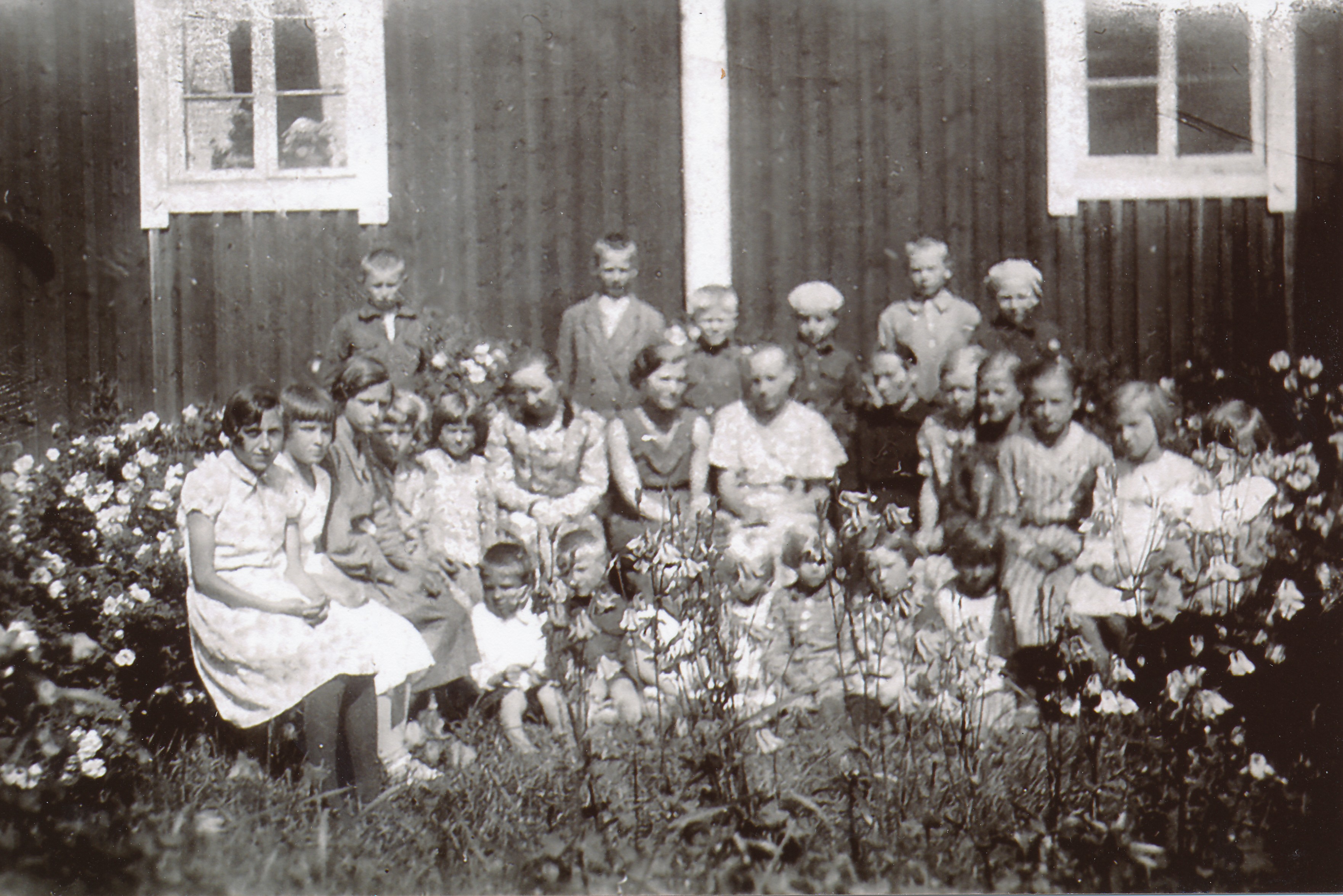 Pyhäkoululaisia Lammin Iso-Evolla vuonna 1934.