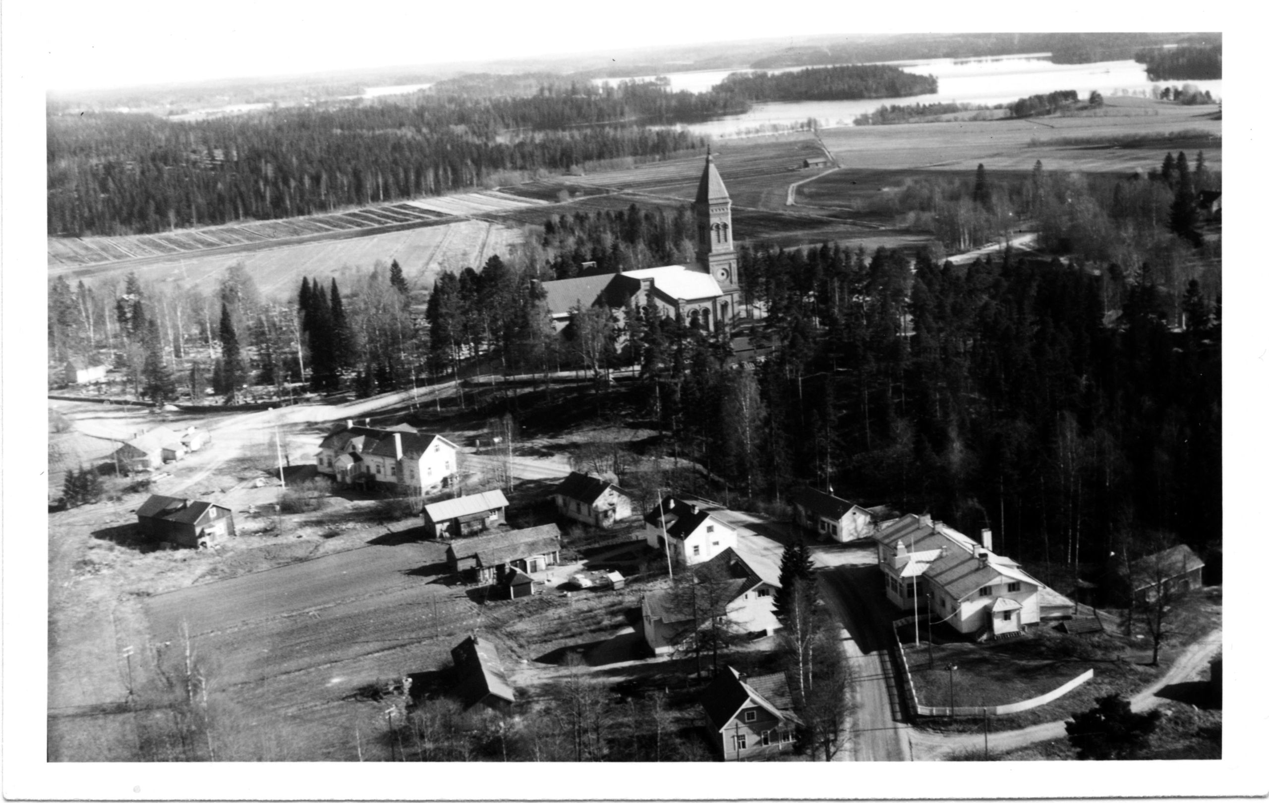 Ilmakuva Lopen Kirkonkylältä 1950-luvulta.