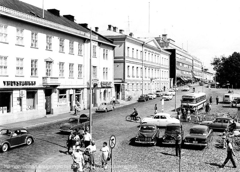 Tekijänoikeus © Hämeenlinnan kaupungin historiallinen museo, kuva julkaistu luvalla.Hallituskatu 14-20YhdyspankkiihmisetautotkeskustaHämeenlinnalinja-autot