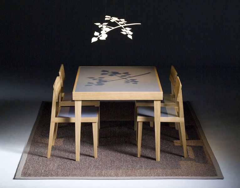 Kiila-kalusteet ja Lehvä-valaisin. Design: Jukka Korpihete. Kuva: Korpihete ltd, KorpiDesign.